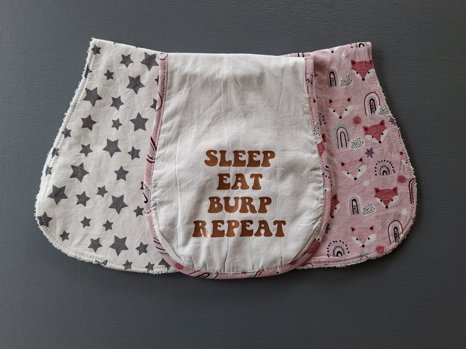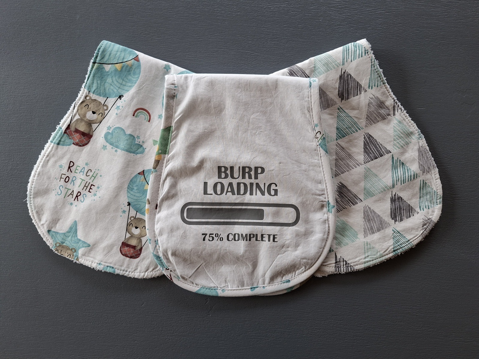 Discover our set of 3 stylish shoulder burp cloths, perfect for new parents and baby shower gifts!